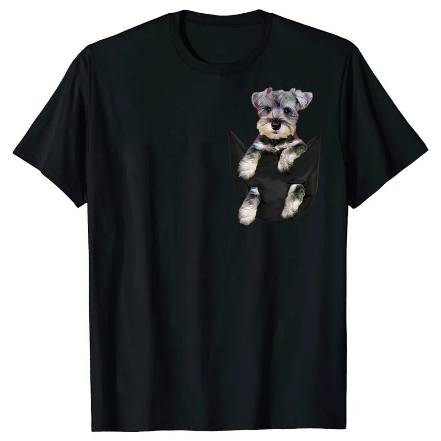 Novelty Awesome Schnauzer Dog In Pocket T Shirts Graphic Cotton Streetwear Short Sleeve Birthday Gifts Summer Style T-shirt Men