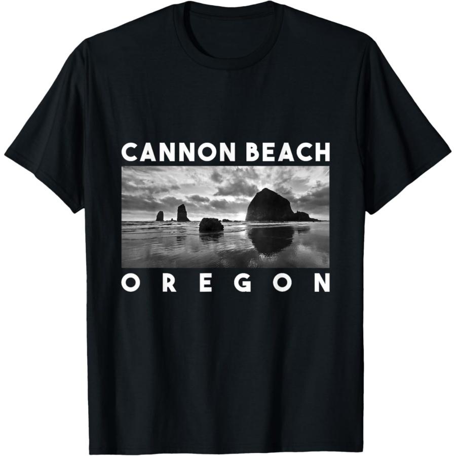 Oregon Cannon Beach Skyline Haystack Rock Travel Souvenir T-Shirt