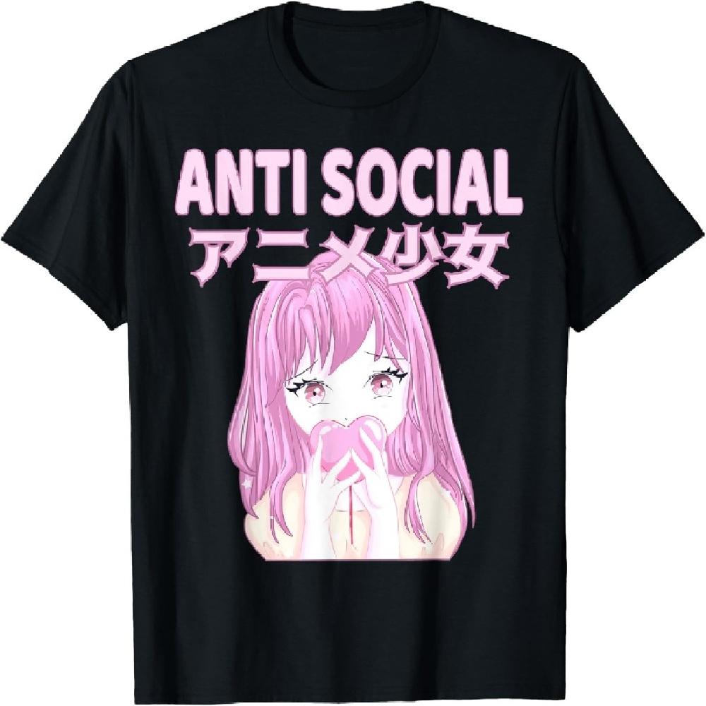 Anti Social Japanese Anime Girl Kawaii Aesthetic Vaporwave T-Shirt