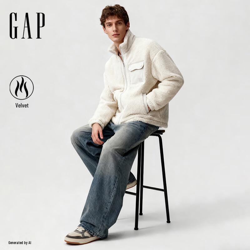 GAP Men's 2025 Winter Faux Lamb Wool Stand-up Collar Jacket 830334