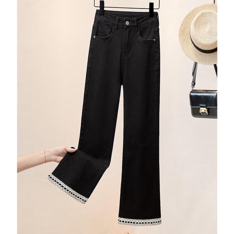 Women's Washed High-Waist Color-Block Micro-Flare Jeans