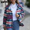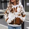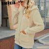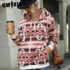 GMXIA Autumn Winter Women's Loose Hooded Zipper Cardigan with Woolen Print Christmas Style Coat for Women