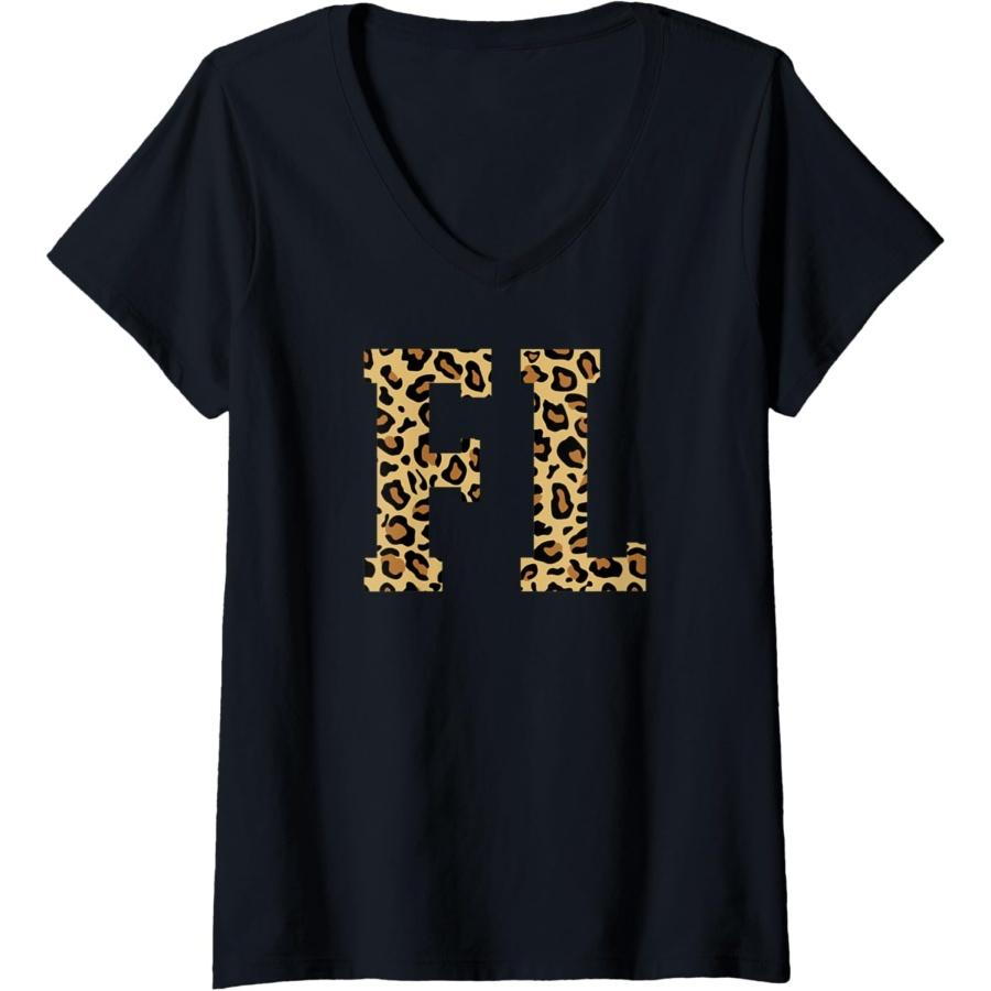 Womens Florida State Pride Leopard Custom State Letters V-Neck T-Shirt