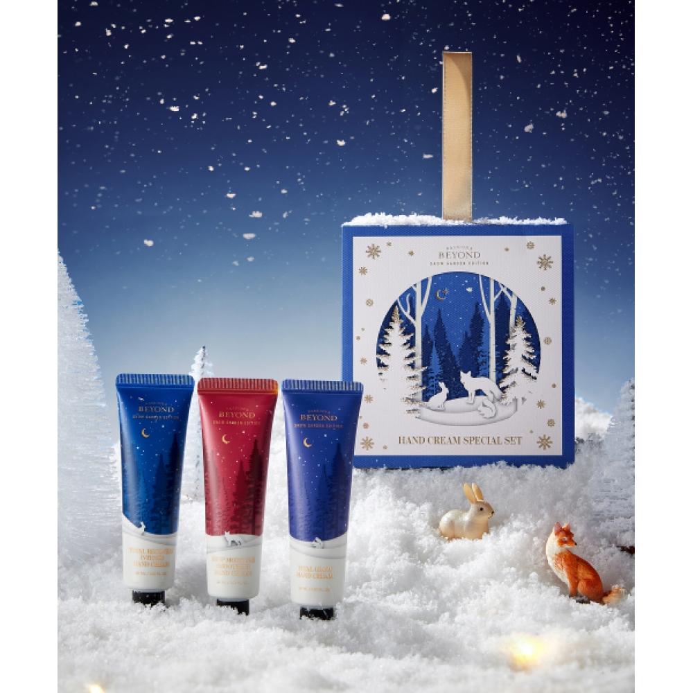 The BEYOND Hand Cream 3-Piece Set (25 Holiday Edition) is a set of hand creams designed to care for dry winter skin with superior moisturizing properties and a lovely scent. Each hand cream comes in a convenient 30ml size that can be easily taken anywhere for on-the-go use. Formulated with the Skin Mimic Ceramide ComplexTM, it helps strengthen the skin barrier while providing a smooth and comfortable feel. The soft powdery musk scent makes this product a must-have in your winter routine.
