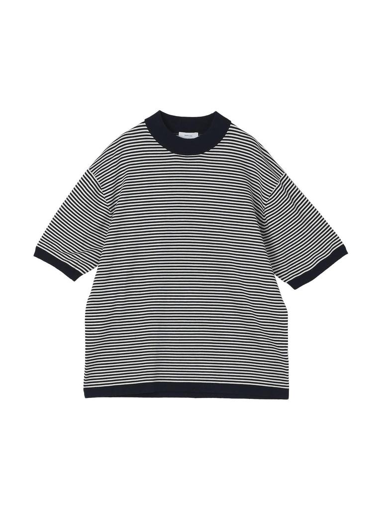 A mock neck summer knit T-shirt perfect for both casual and business wear. Comfortable even in summer.