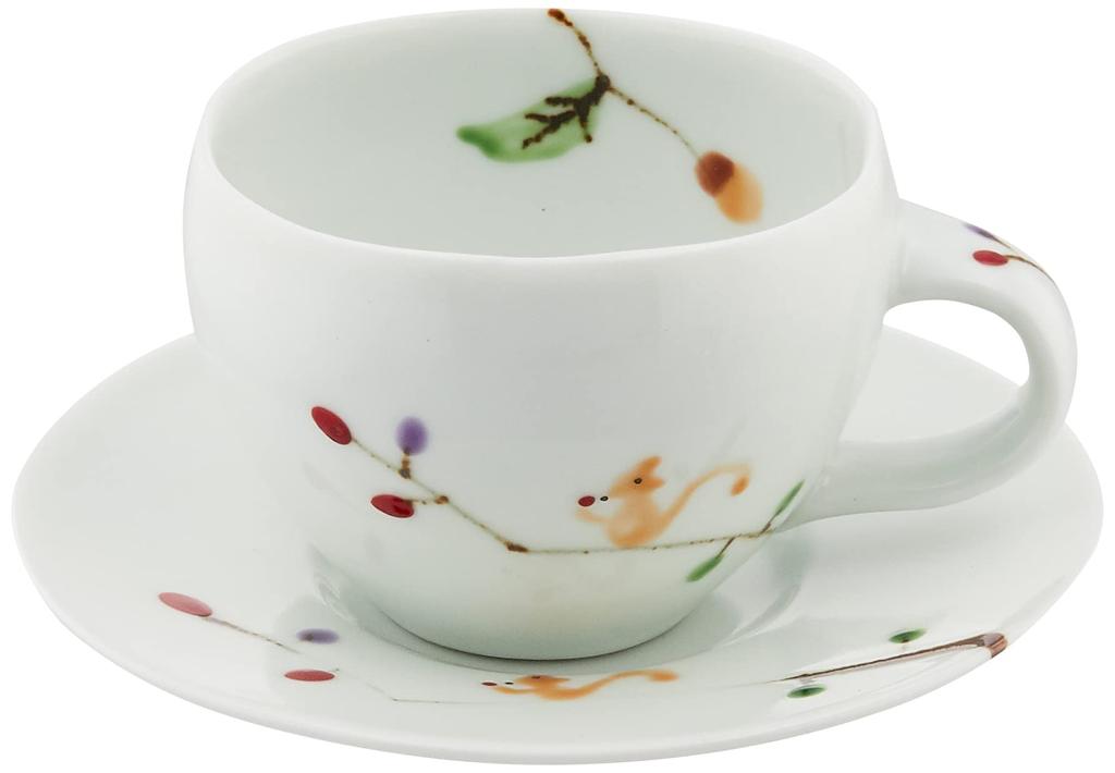 Hamato Arita Ware Ichimine Kiln Coffee Cup and Saucer, 200ml, Squirrel Design, White, 401930