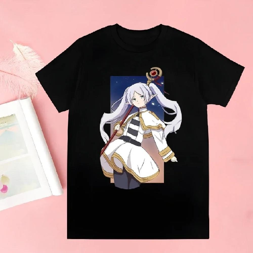 Cartoon Frieren Printed Women T-shirt Japanese Anime Beyond Journey's End Graphic Short Sleeve T Shirts Harajuku Clothing Tops4