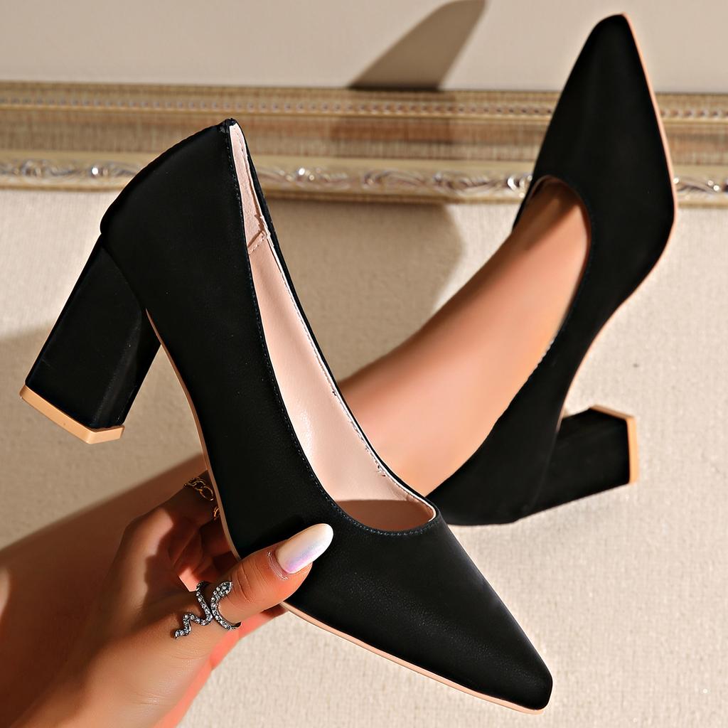 Plus Size High Heels Women's Fall 2025 Comfort Pointed Block Heels
