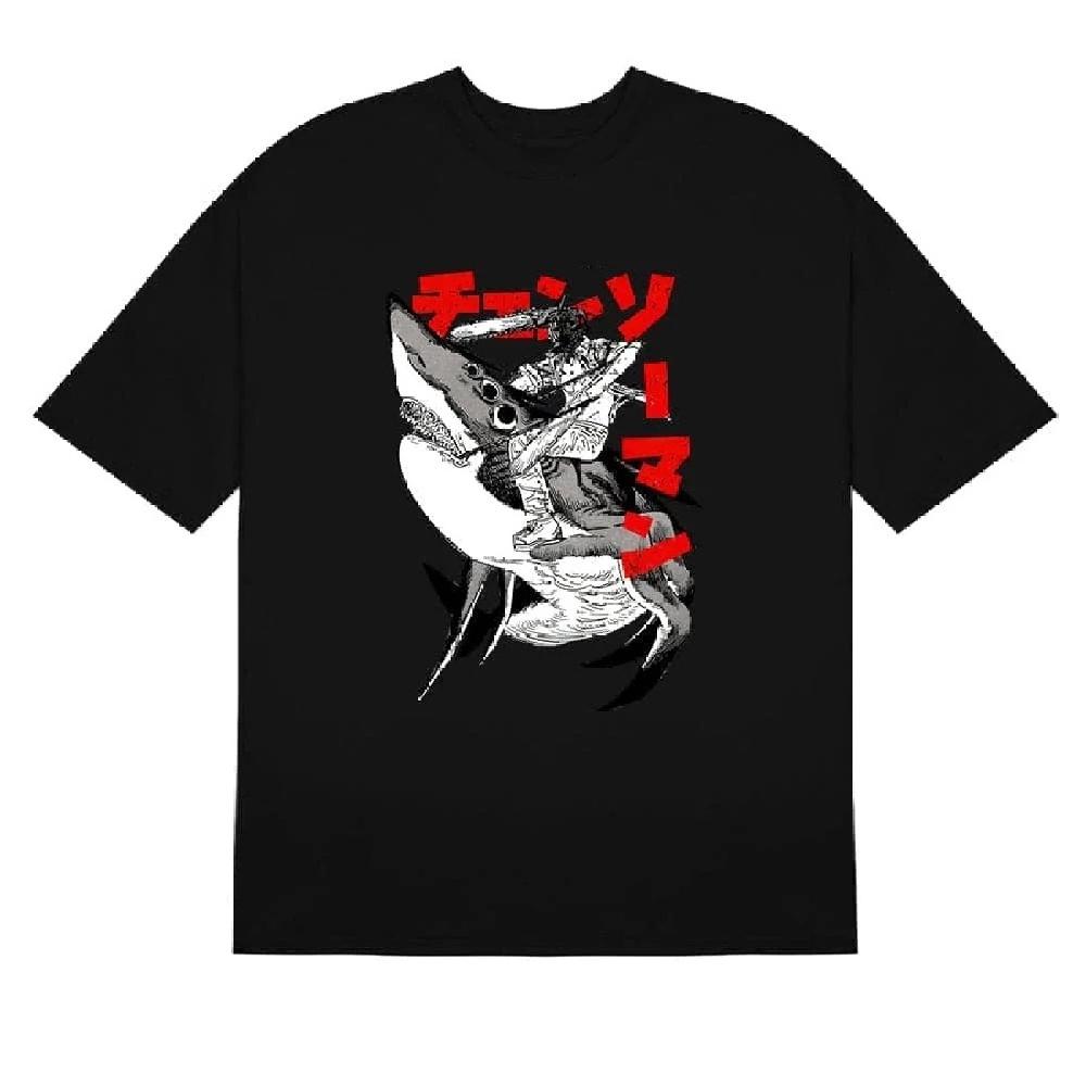 Tričko Chainsaw Man Shark Ride - 100% bavlna anime tričko s výrazným designem