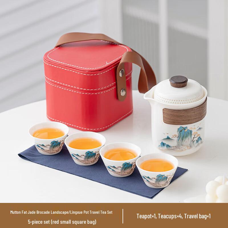 Hayuqi Mutton Fat Jade Porcelain Landscape Travel Tea Set