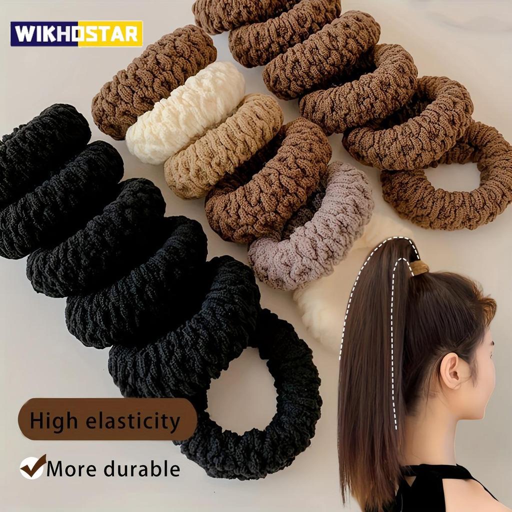 Gumičky do vlasů, Vysoce elastické odolné scrunchies do vlasů - Bezešvé, Silné pletené gumičky do culíku v různých barvách
