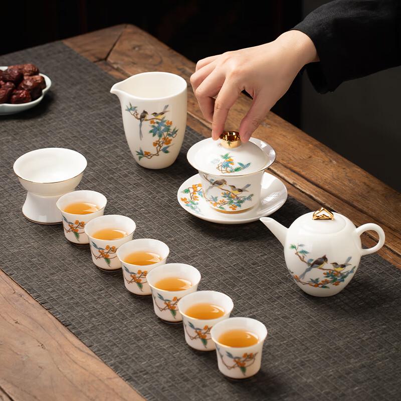 High-End Gold Inlaid Jade White Porcelain Kung Fu Tea Set