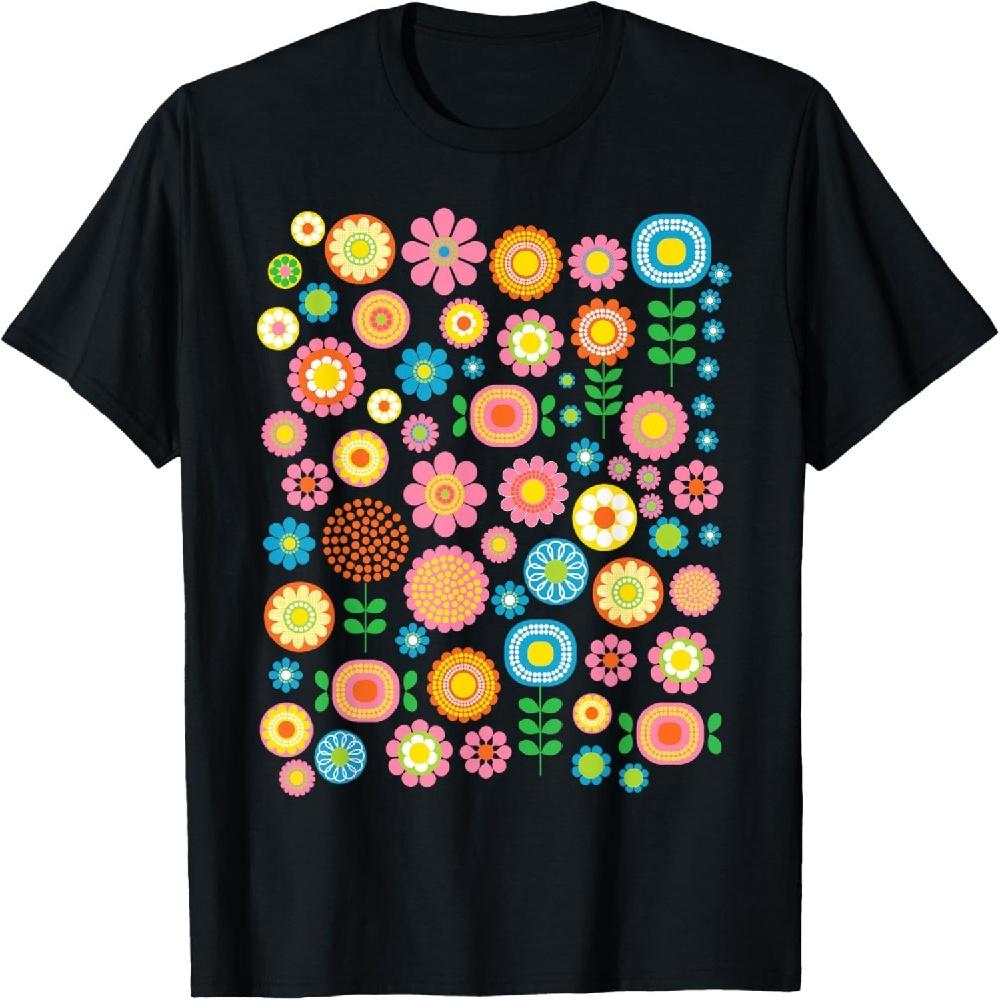 Cute Colorful Retro Scandinavian Folk Flower Art Pattern T-Shirt