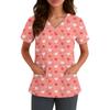 Women's Cute Bow Printed Work Clothes V-neck Double Layer Pockets Basic Short Sleeve Top Pullover