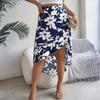Women's Fashionable Floral Print Elastic Waist Ruffle Edge Mid Length Irregular Skirt
