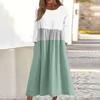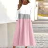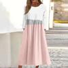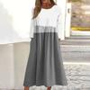 Dámské ležérní midi šaty s kulatým výstřihem a pruhovaným potiskem, s dlouhým rukávem a kapsou