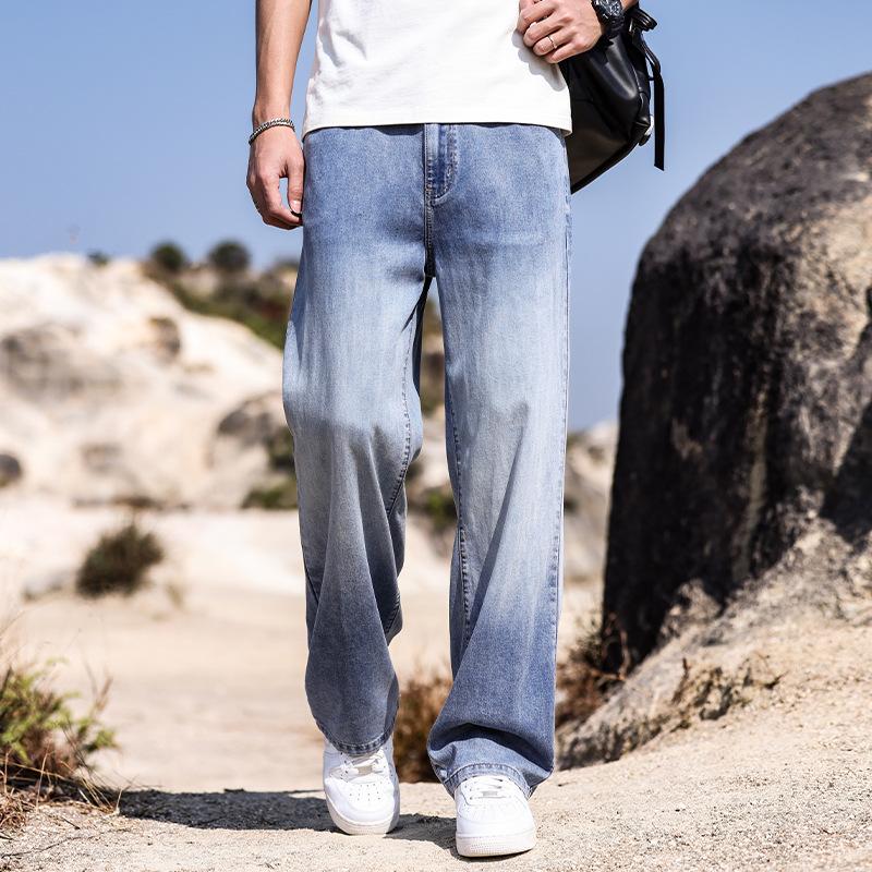 JYL Thin jeans men's rookie wide straight wide trousers long scrubbed for young people.