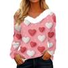 Women's Valentine's Day Printed Long-Sleeved Shirt, V-Neck, Casual Loose-Fitting T-Shirt Top