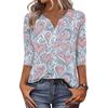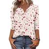 Dámské tričko s potiskem, knoflíky, 3/4 rukávy, pro každý den, na víkend, módní, základní, s výstřihem do V, běžný top
