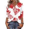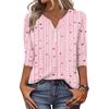 Dámské tričko s potiskem, knoflíky, 3/4 rukávy, pro každý den, na víkend, módní, základní, s výstřihem do V, běžný top