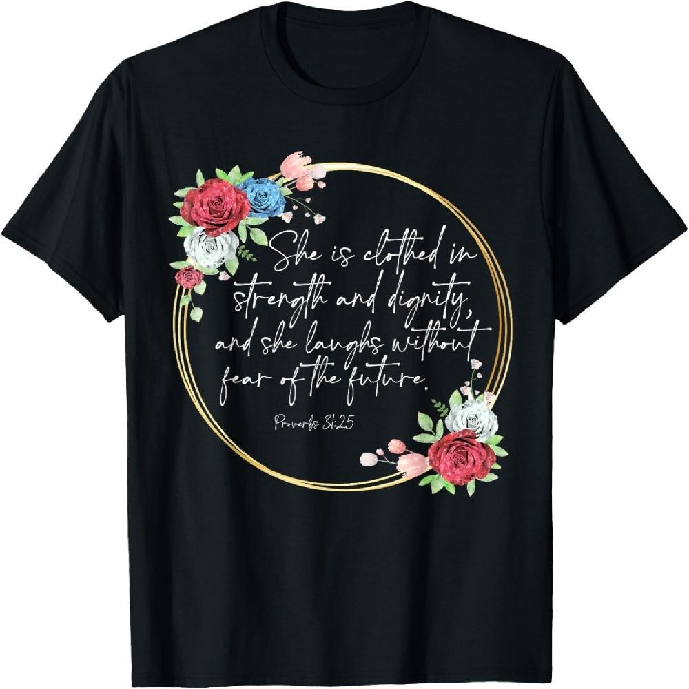 Floral She Is Clothed In Strength And Dignity, Christian Tee T-Shirt