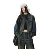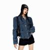 ICH MODE Women's American Style Textured Denim Cardigan Jacket