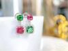 With 925 Stamps Colorful Double Square Zircon Earrings Women's Fashion Party Jewelry Boho Jewelry Gift