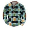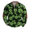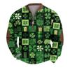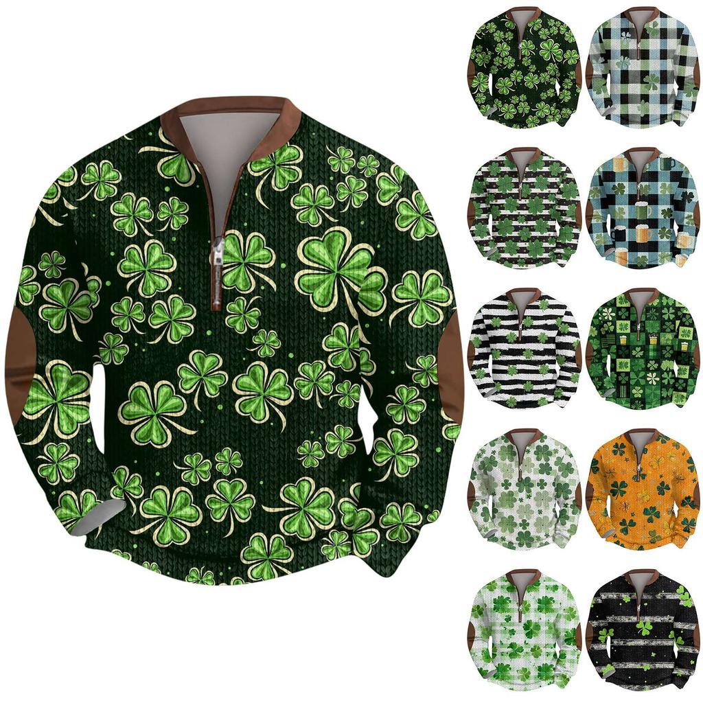 Mens Christmas Sweater Zip Up Sweatshirts Vintage Knit Graphic Sweatshirt St. Patrick's Day Stand Collar Pullover