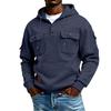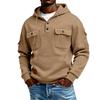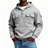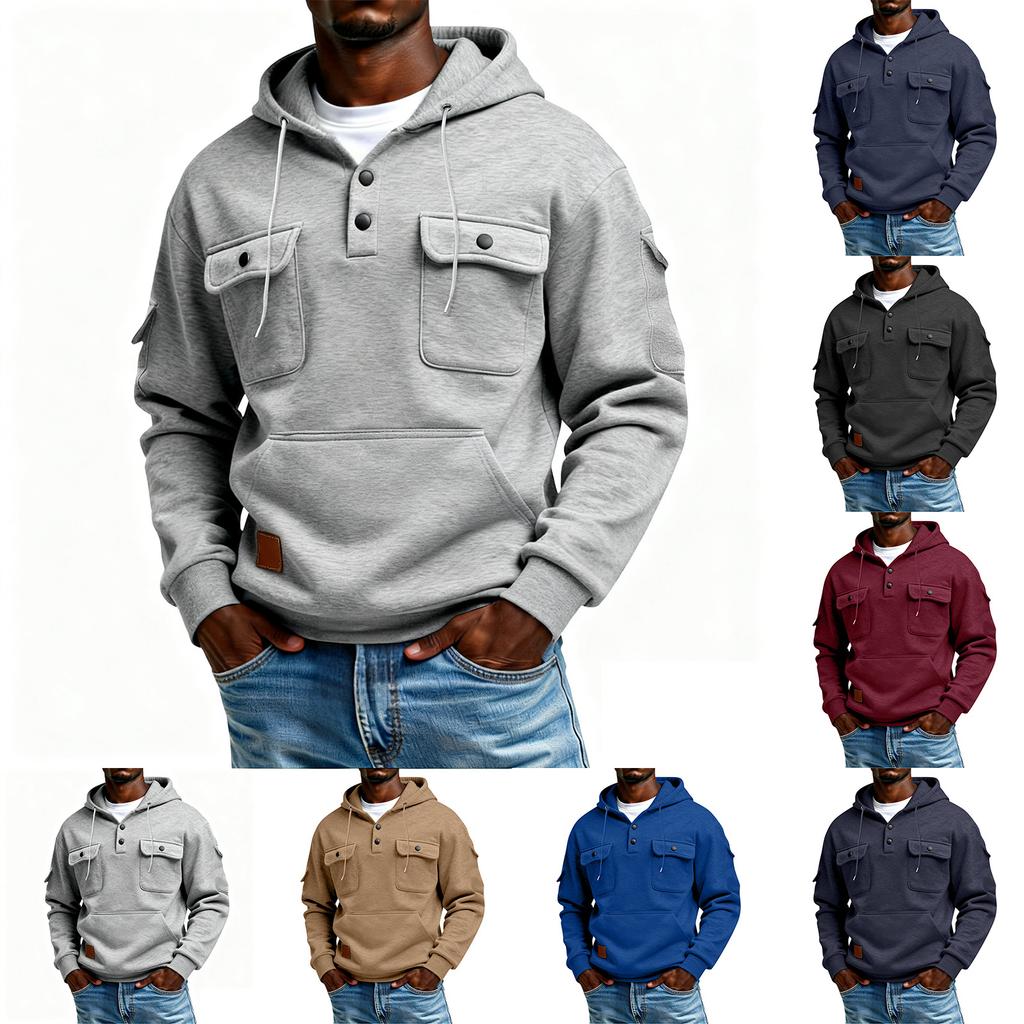 Men's Winter Solid Color Button-Down Collar Multi-Pocket Hoodie Men's Sports Plus Size Casual Sweatshirt