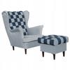 Fotel uszak Winston z podnóżkiem pufą Family Meble krata granatowo - biała