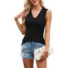 Women's Sleeveless Knitted Large V-neck Solid Color Strip Pullover Top