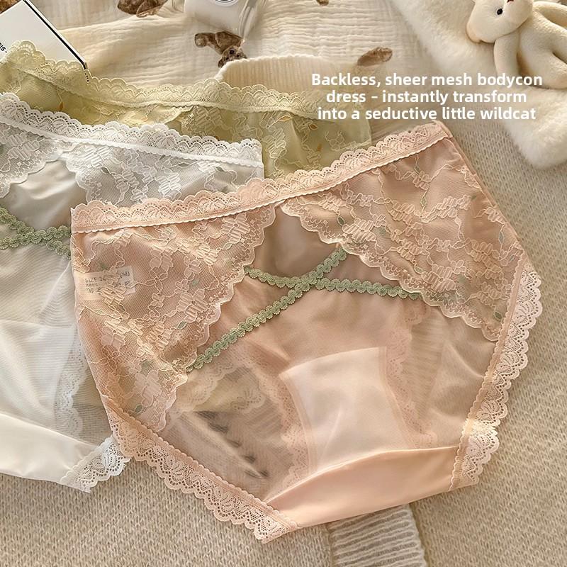 Ladies Summer Thin Style Pure Desire Lace Sexy Hollow Waist Pure Cotton Extension Crotch Triangle Briefs