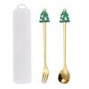 Nerezová ocel Vánoční stromek Ve tvaru čepice Santa Kreativní lžička na míchání kávy Dezertní vidlička na ovoce Pro sváteční stolování Párty Dekorace