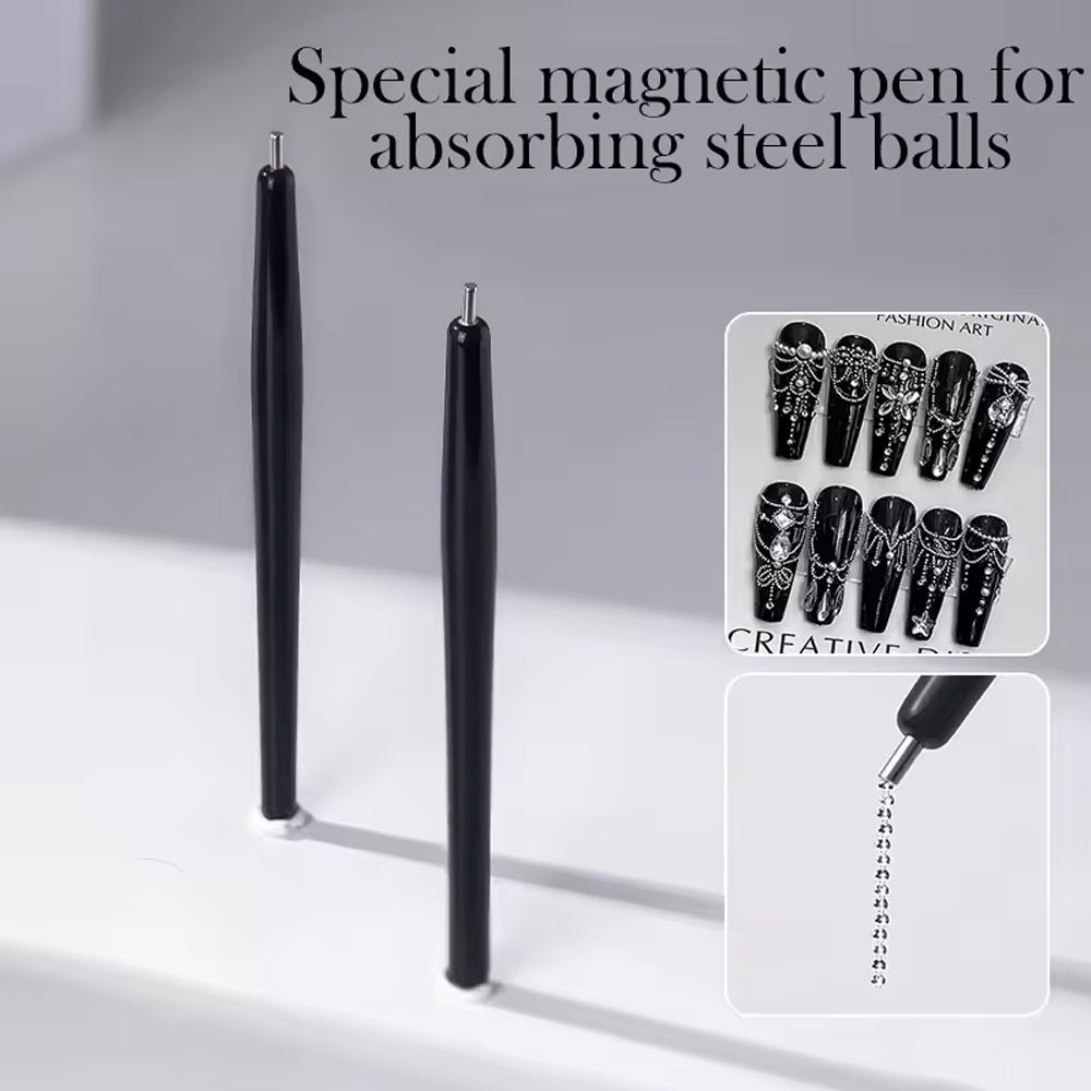 YIKOOLIN 1/2pcs Super Strong Suction 11cm Steel Ball Magnet Pen for Nail Art Tools Cat Eye Nail Polish Bead Magnet Pen