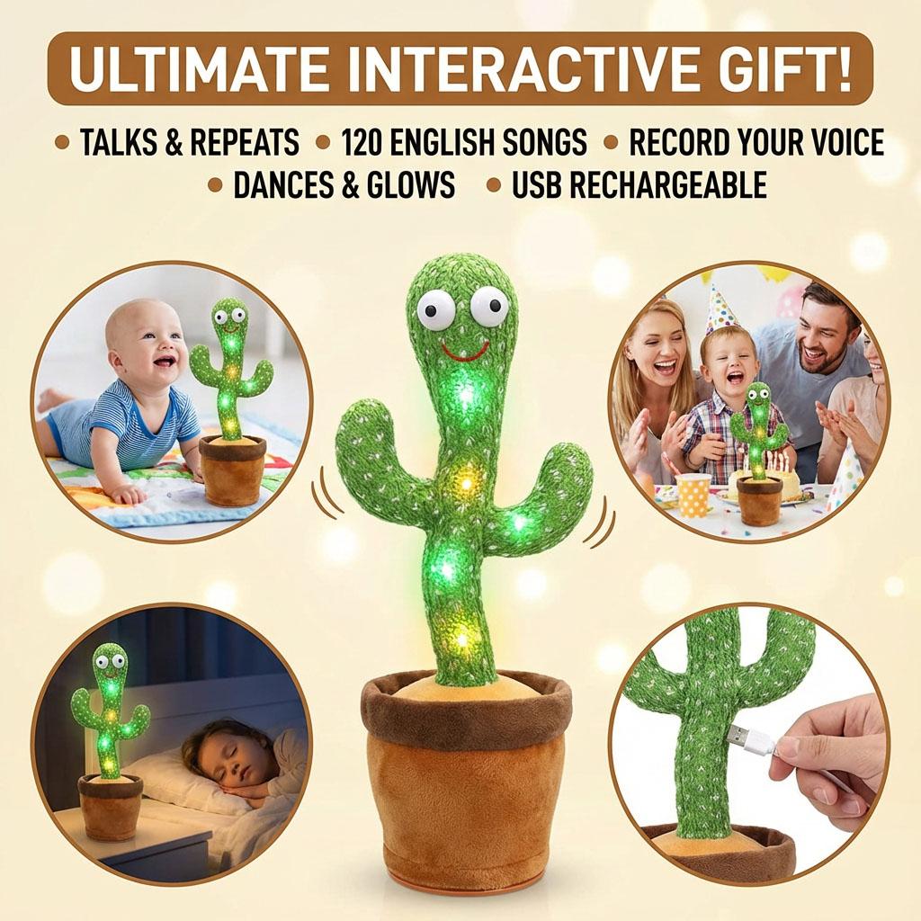 Talking & Mimicking: The cactus toy has a recording feature that repeats whatever you say in a funny, high-pitched voice. It is great for language training and keeps babies entertained for hours.