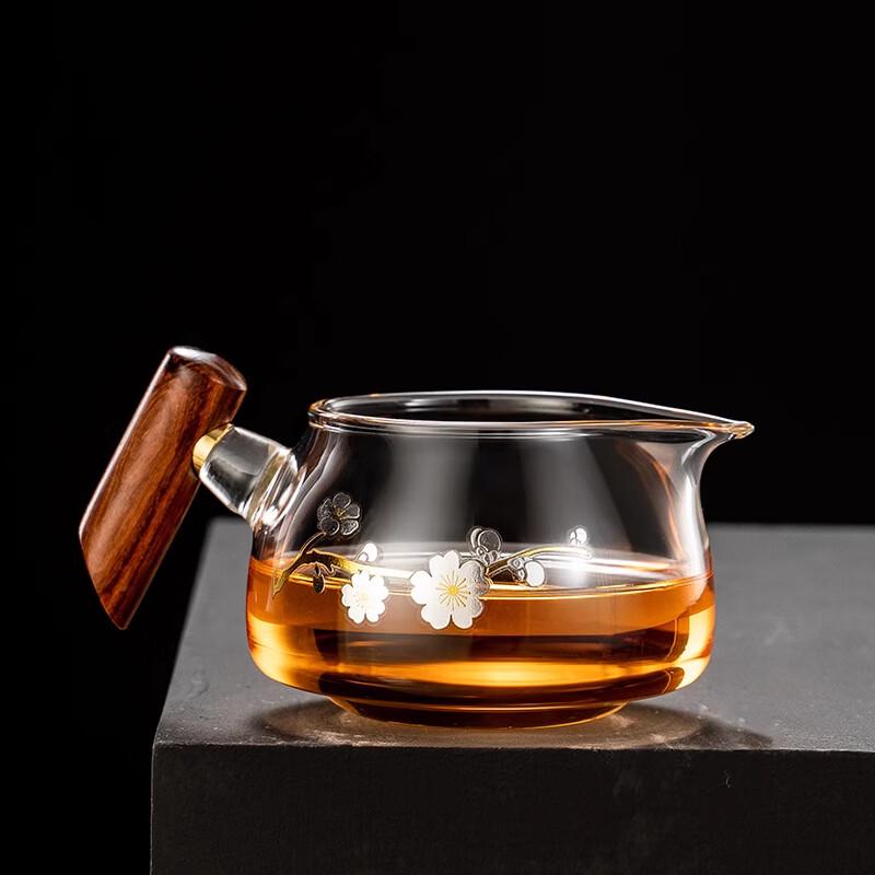 Shangqi Wooden Handle Glass Gongdao Cup with Built-in Filter