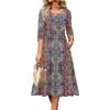 Dámské šaty s 3/4 rukávem, ležérní, splývavé, áčkového střihu, midi tričkové šaty s kapsami, kulatý výstřih, na dovolenou, boho, plážové letní šaty