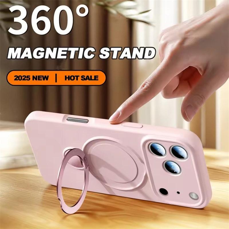 360° Magnetický Stojan Tekutý Silikonový Kryt na Telefon Pro iPhone 17 Air 13 14 15 16 Pro Max Plus Držák pro Magsafe Nabíjení Ochranný Kryt