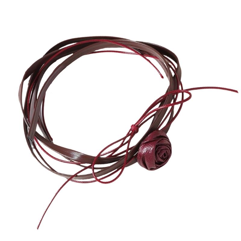 Handmade Leather Choker Necklace Elegant Camellia Flower Pendant Clavicle Chain for Holiday Parties and Everyday Wear