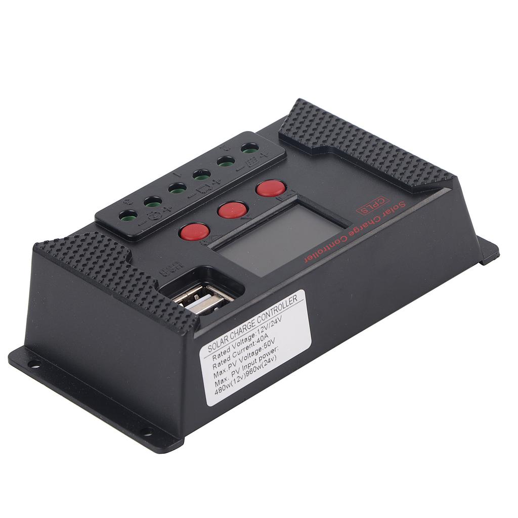 5. Battery charge controller, rated charging current is 40A and rated discharge current is 20A.