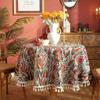 Retro žakárový kulatý ubrus Krátký okraj střapec Zesílený prachotěsná podložka na stůl Jídelní stůl Dekorativní přehoz na stůl