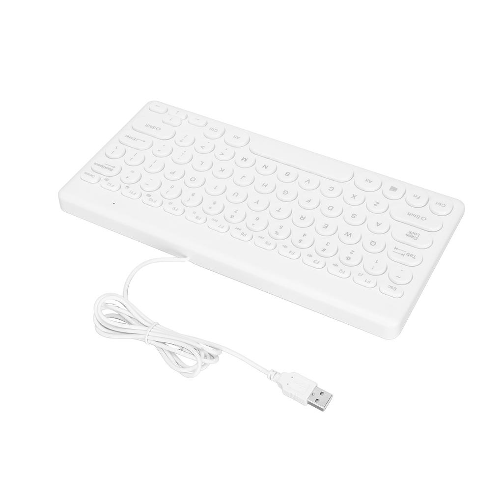 USB Keyboard Wired 78 Keys Ergonomic Design Power Saving Round Keycaps Wear Resistant Durable Stable Small KeyboardWhite