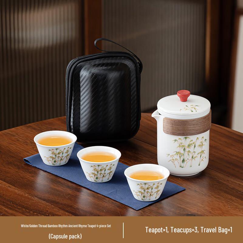 Chinese Style Golden Silk Bamboo Portable Ceramic Tea Set