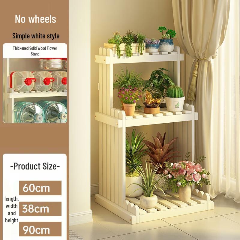 Solid Wood Multi-Tier Plant Stand with Hanging Basket