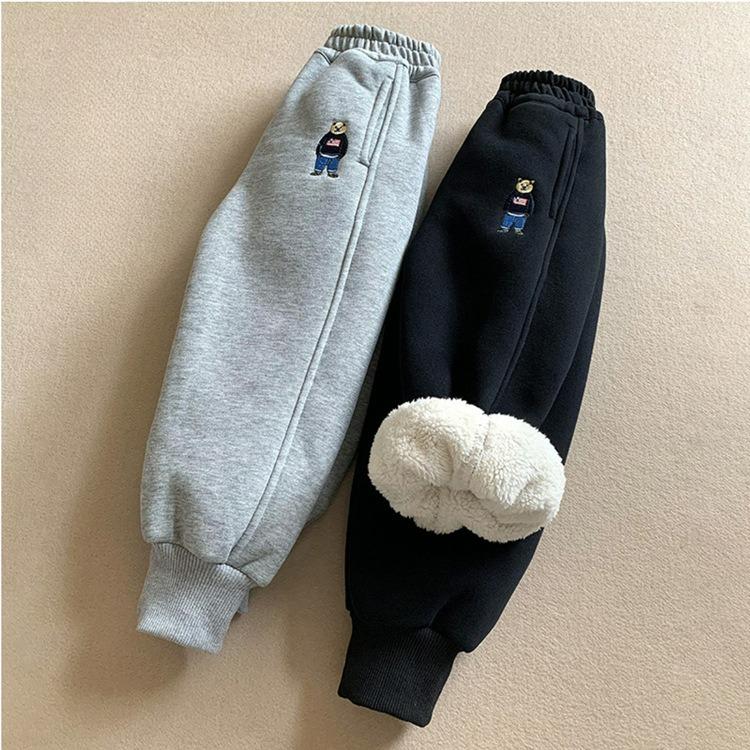 Podzimní a zimní chlapecké kalhoty z jehněčího rouna plus sametové zateplení, dětské jednodílné fleecové tepláky, dětské sportovní kalhoty