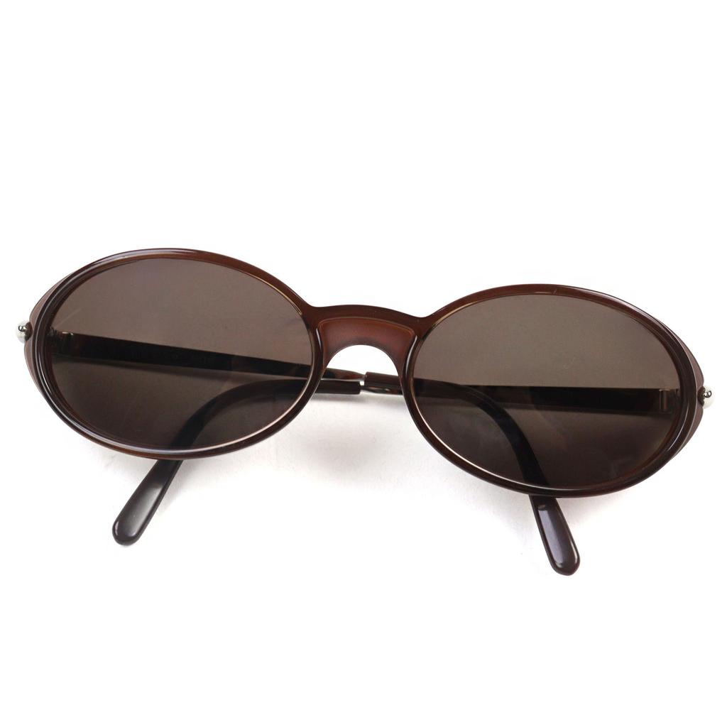 Excellent Cartier sunglasses 2C decor logo engraved oval shape Clear Brown Silver men Used