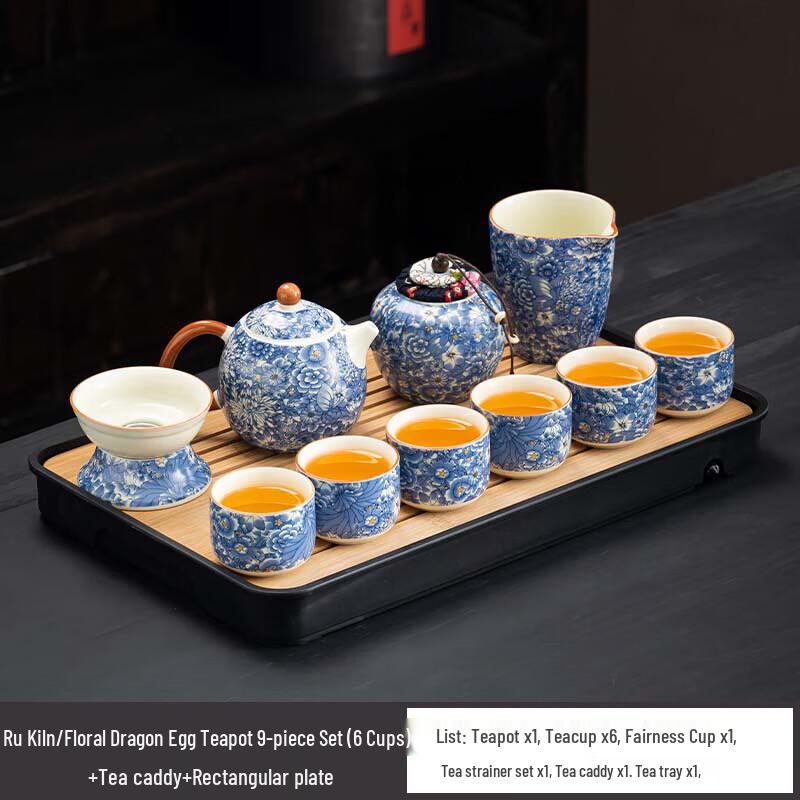 Ru Kiln Blossom Dragon Egg Tea Set
