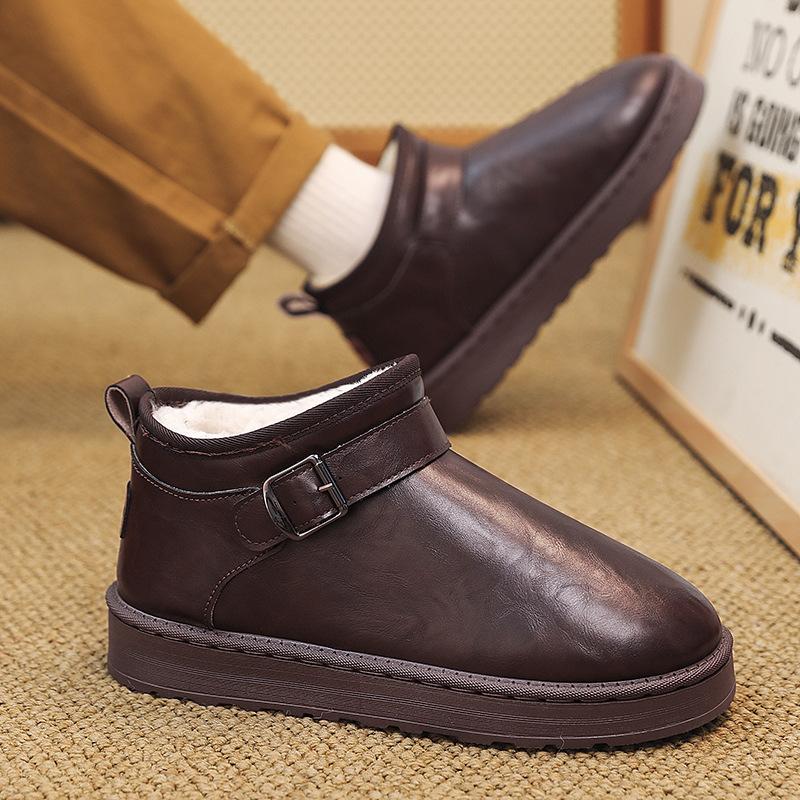 Mens soft elastic leather waterproof winter warm cold padded snow boots thick bottom non-slip wear outdoor leisure sports running cotton boots