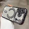 High-grade Glitter Rhinestones Phone Case For iPhone 17 16 15 11 12 13 14 Pro Max Plus Magsafe Magnetic Clear Lens Protect Cover