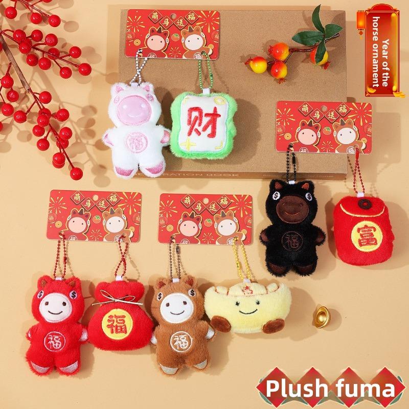 Plyšové přívěsky Šťastný kůň, Panenky, Ozdoby na školní tašku, Kreslené zlaté cihličky, Doplňky Šťastný sáček, Klíčenky, Novoroční dárky